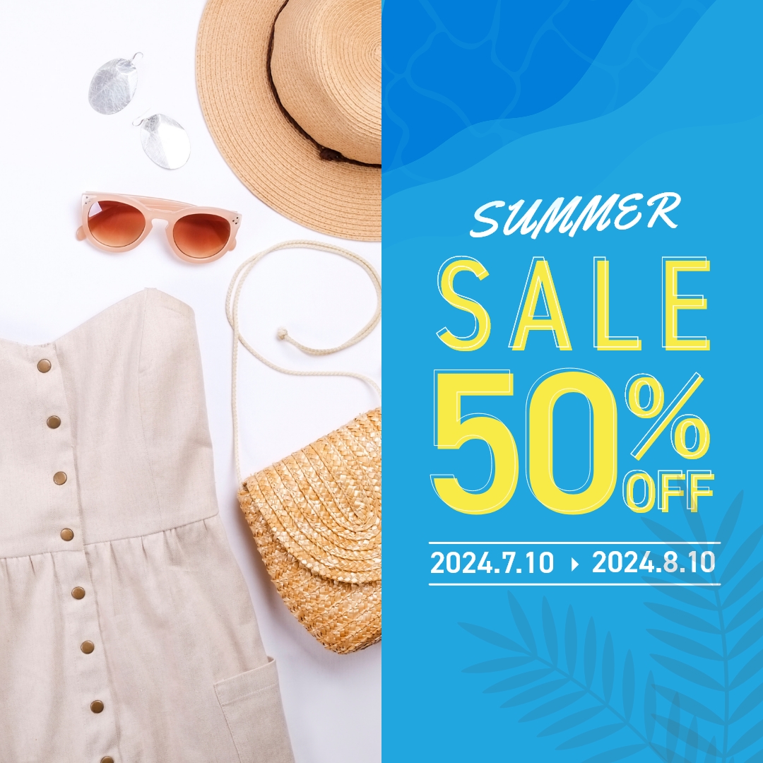 バナー制作 バナー制作 X Facebook はてブ Pocket LINE コピー 2025.06.18 【バナー制作】業務:Webデザイン業種業界:ファッション詳細:夏のセールということで、色使いと写真にこだわりました。夏を感じさせる模様を青の部分に入れました。使用ツール:Adobe XD制作期間:1日(修正含む)